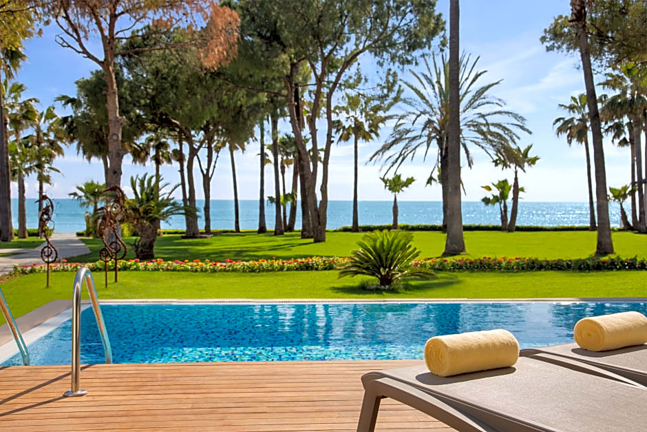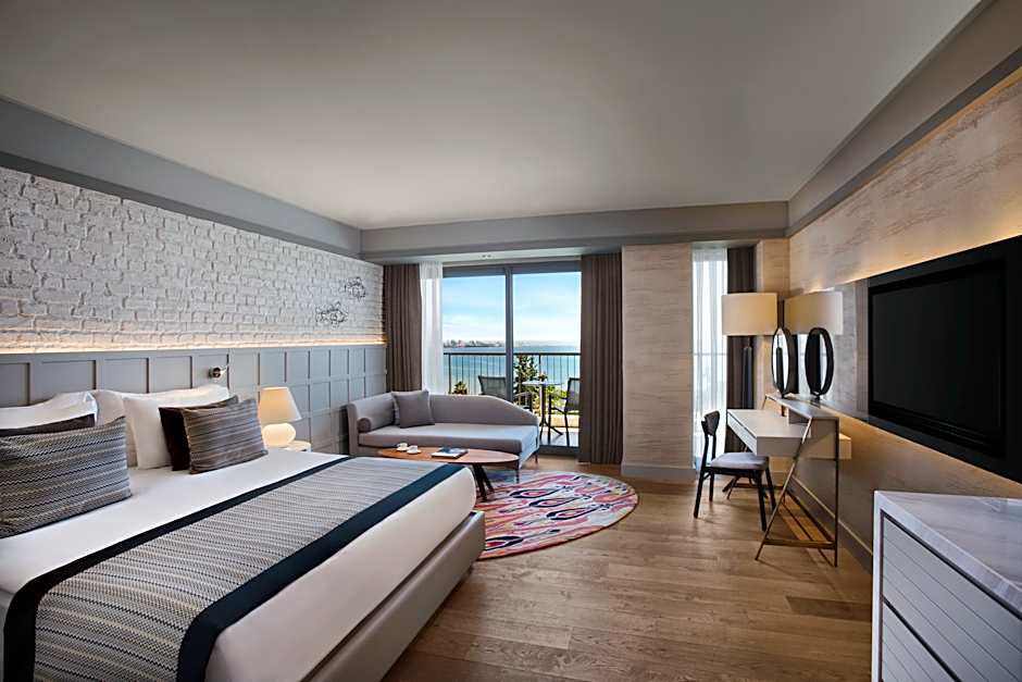 SUPERIOR ROOM SIDE SEA VIEW-POOL VIEW is 269 square feet and includes a queen-size bed 150-154 width.