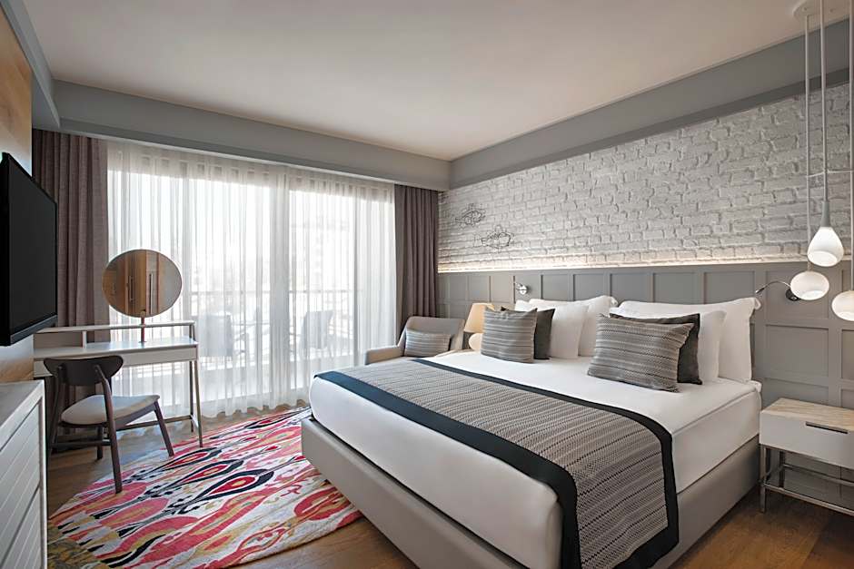 DOUBLE SINGLE USE DELUXE SEA VIEW is 366 square feet and includes a double bed 131-150 width plus balcony, extra beds on demand, and cable tv and is Wheelchair-accessible with a Disability-friendly bathroom.